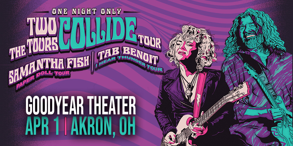 Tab Benoit is renowned for his distinctive guitar tone and Otis-Redding-Esque voice. Samantha Fish is known for her powerful vocals, electrifying slide guitar, and energetic live shows. Together they blend traditional blues with modern rock, soul, Cajun and roots music. Join them together, for one night, as this co-bill of raw talent, and soulful storytelling takes the stage of Goodyear Theater with their “Two Tours Collide” tour.