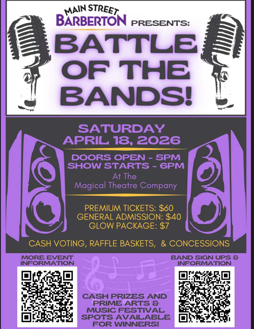 Support a vibrant downtown and rock out at the same time! Main Street Barberton is hosting a Battle of the Bands Fundraiser on Saturday, April 18, 2026.
