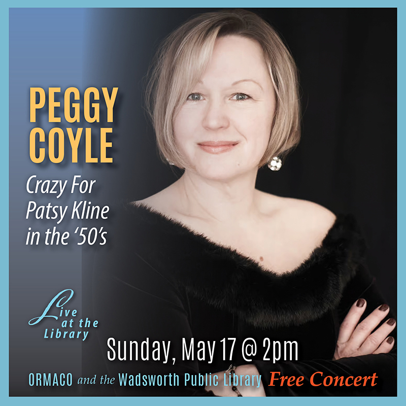 Ohio Regional Music Arts and Cultural Outreach (ORMACO) and the Wadsworth Public Library continue Live at the Library with Peggy Coyle on Sunday, May 17, 2026, at 2 pm at the Wadsworth Public Library, 132 Broad Street, Wadsworth, OH 44281.