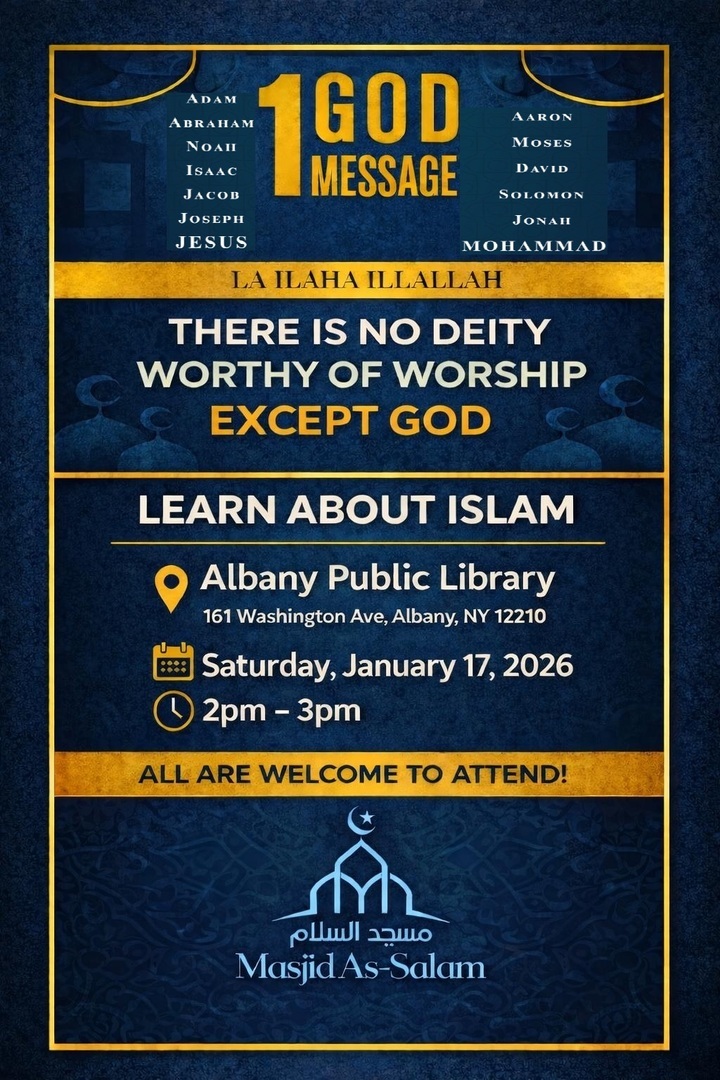 We invite you to join us for an open and respectful discussion to learn more about this shared message and Islam’s perspective on faith, purpose, and community.