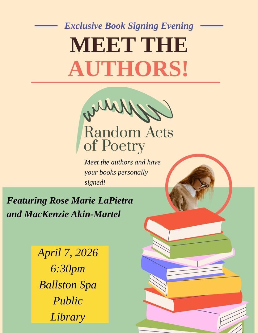 A lively meet and greet with two engaging authors. Rose LaPietra, author of "So What If Maybe" and MacKenzie Akin-Martel of "Valleys in My Mind". Who will be happy to sign copies of their works.