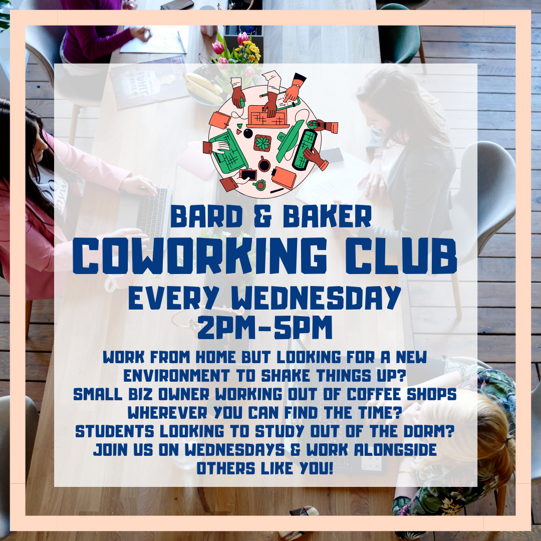 **the space is also open to the public during this time for indoor dining and game play. You are also welcome to come any other day of the week and work as well — Wednesdays have just been decided upon to highlight it as a coworking day to community members**