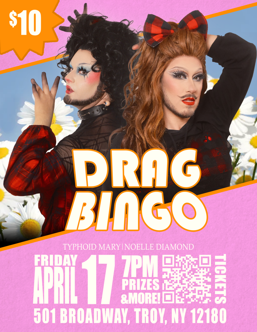 Ticket price includes all materials for Bingo and a chance to win some fun prizes! Our fabulous local queens hosting will be TV and magazine’s very own gorgeous Typhoid Mary, and the incredible, the stunning Noelle Diamond!