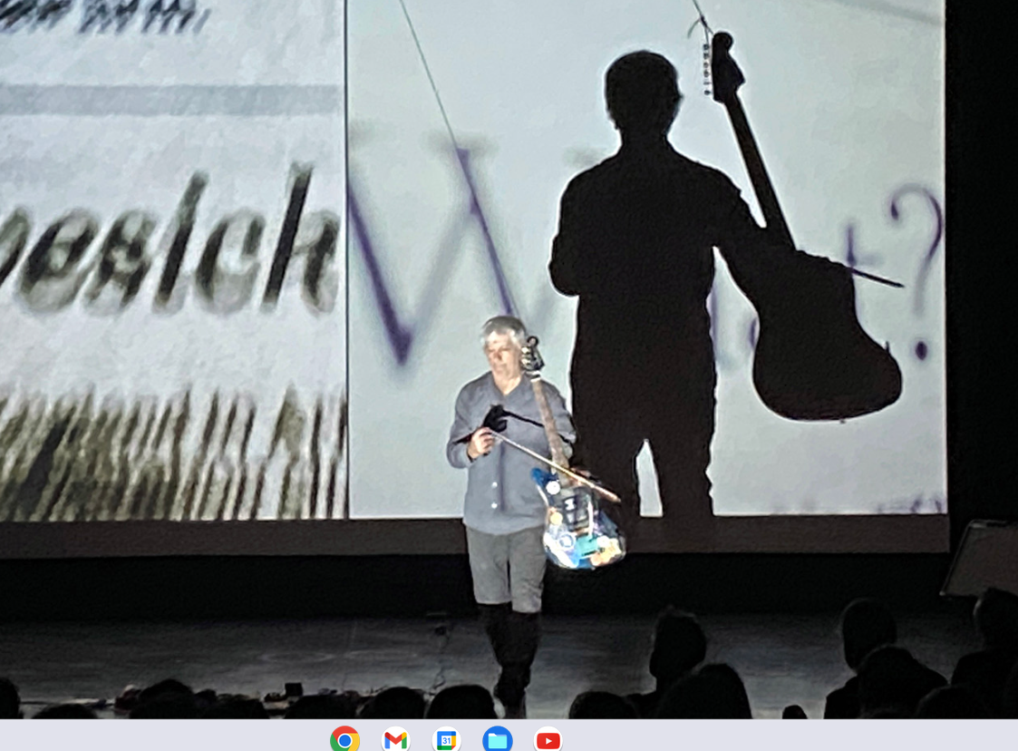 Singer and Ranaldo break traditional dynamics between performer and audience to examine how live image and sound might interact. Contre Jour, the shadow is introduced as an integral part of the performance. Ranaldo and the suspended guitar cast their omnipresnet shadows on the screen, staging a dialogue with the projections. A folding in of prior documented performances featuring shadows creates a mise en abyme setting. Contre Jour was invited to GNRation, Porto (2024), the arts festival Dark Mofo, in Tasmania (2023), and the S8 International Film Festival, A Coruna, Spain (2022) among others.