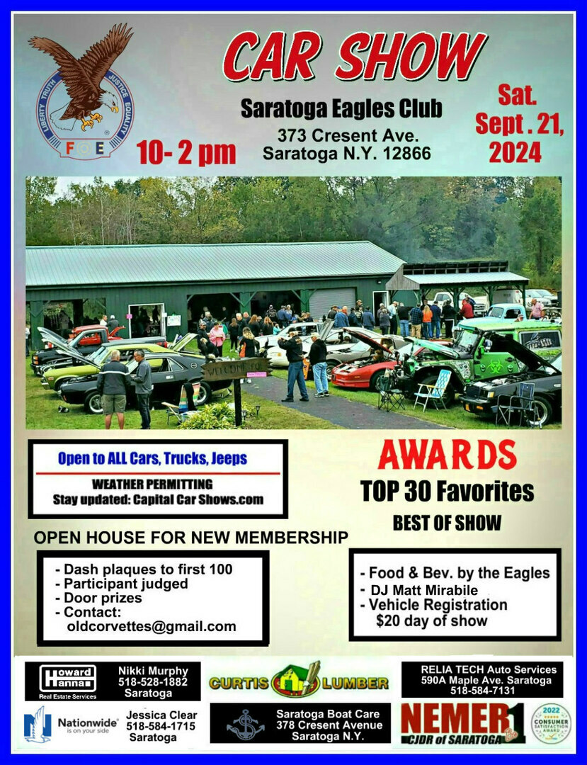 Dash plaques to the first 100 cars, door prizes and DJ Matt Entertaining. Food and beverage by the Eagles.