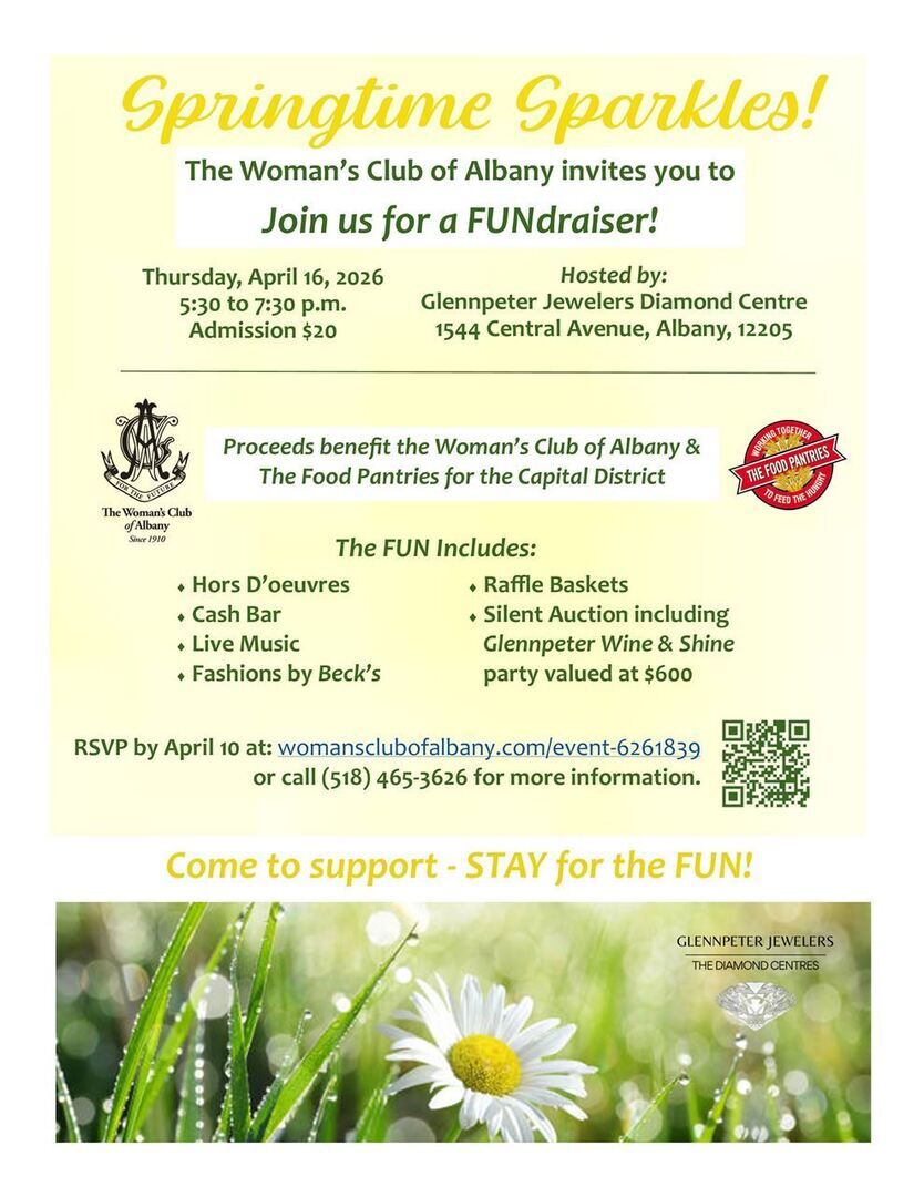 Bring a friend and enjoy a fun evening while supporting The Woman's Club of Albany and The Food Pantries for the Capital District. Bid on treasures and gifts for family, friends or yourself in the silent auction or in the beautiful, themed raffle baskets. Admission includes light fare, live music, fashions by Beck's and door prizes. Cash bar with all receipts going to the fundraiser. Come to support. Stay for the fun!