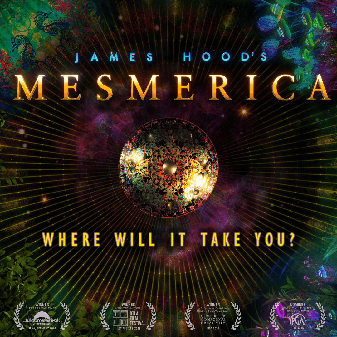 James Hood's MESMERICA is a groundbreaking immersive audio-visual experience, exhibiting in planetariums and dome venues across the US and Canada. Combining James Hood's music with carefully curated 3D animations from artists around the world, the award-winning show is an enormous hit with both audiences and planetarium operators alike, breaking all existing records for full-dome/planetarium music shows. The hour-long show features 360° projections and stunning 7.1 surround sound.