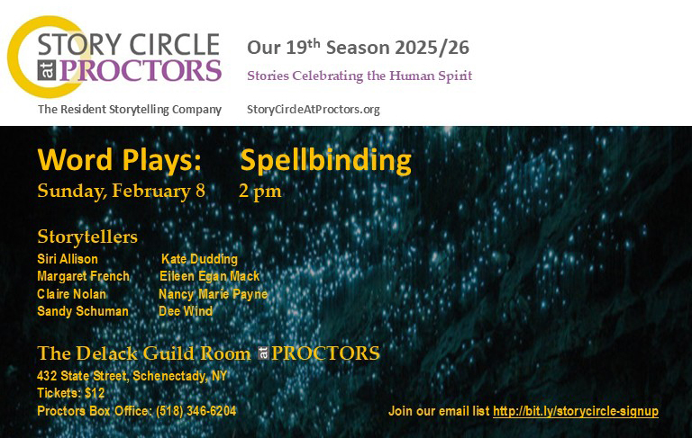 Our tellers are: Siri Allison, Kate Dudding, Margaret French, Eileen Egan Mack, Claire Nolan, Nancy Marie Payne, Sandy Schuman, and Dee Wind.