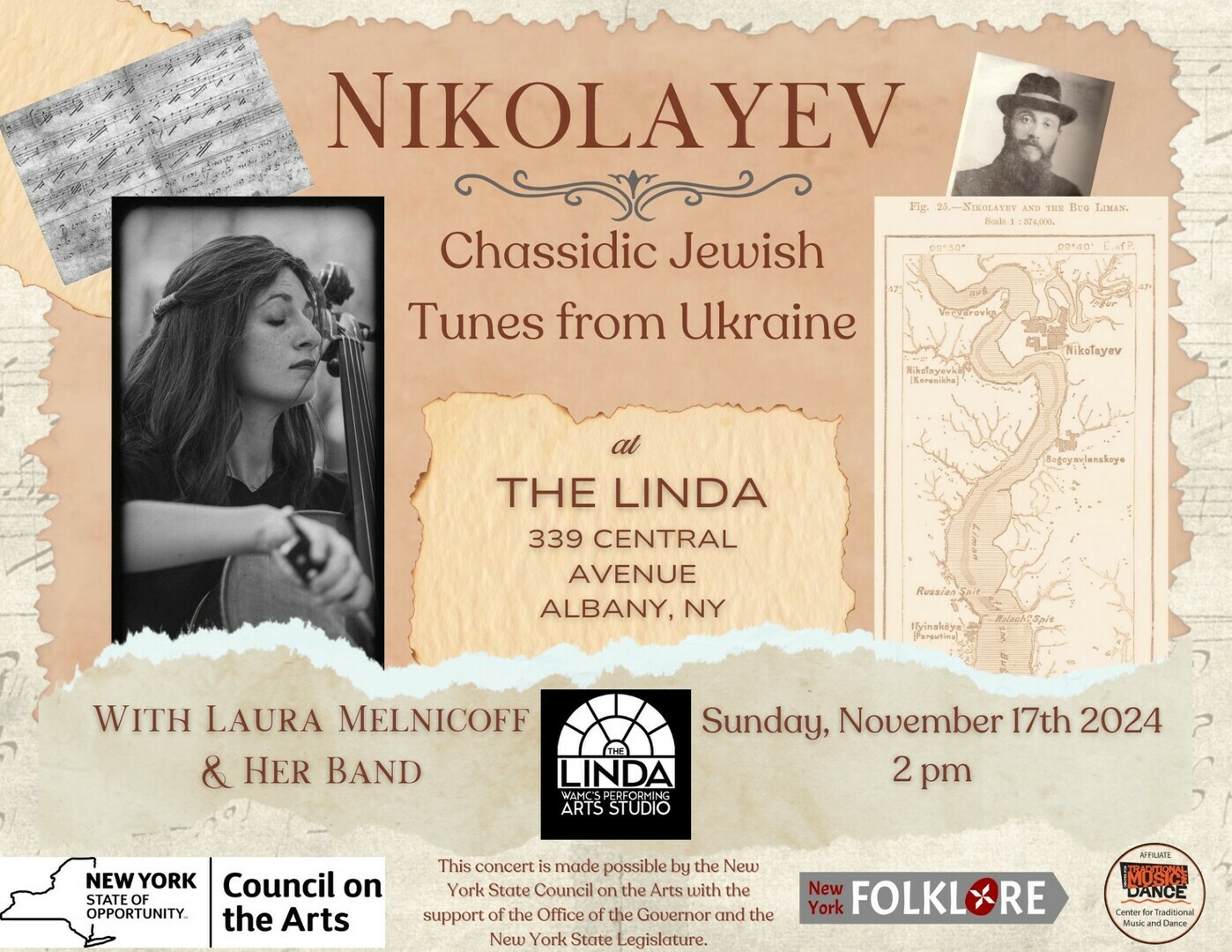 Nikolayev is a performance of music composed by members of the Charitonow family, who lived in the Russian Empire town of Nikolayev at the end of the 19th century. Avraham and his two sons, Aharon and Sholom, were renowned musicians, as well as kosher butchers in their community in what is now known as Mykolaiv, Ukraine. Their compositions from the late 19th and early 20th centuries continue to be actively sung and performed today in the Hasidic world. From soulful melodies to raucous dance tunes, this concert will be a window into a living history, with a world-class klezmer band