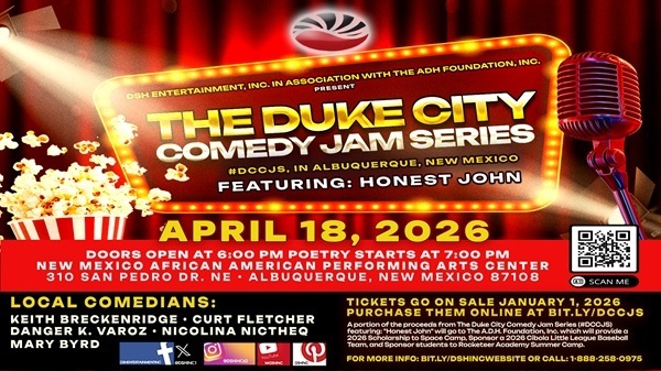 The Duke City Comedy Jam Series (DCCJS) returns with an exciting night of stand-up comedy headlined by Honest John. Hosted in Albuquerque and organized by DSH Entertainment, Inc., this event showcases a lineup of talented comedians delivering sharp humor, relatable stories, and crowd-pleasing punchlines.