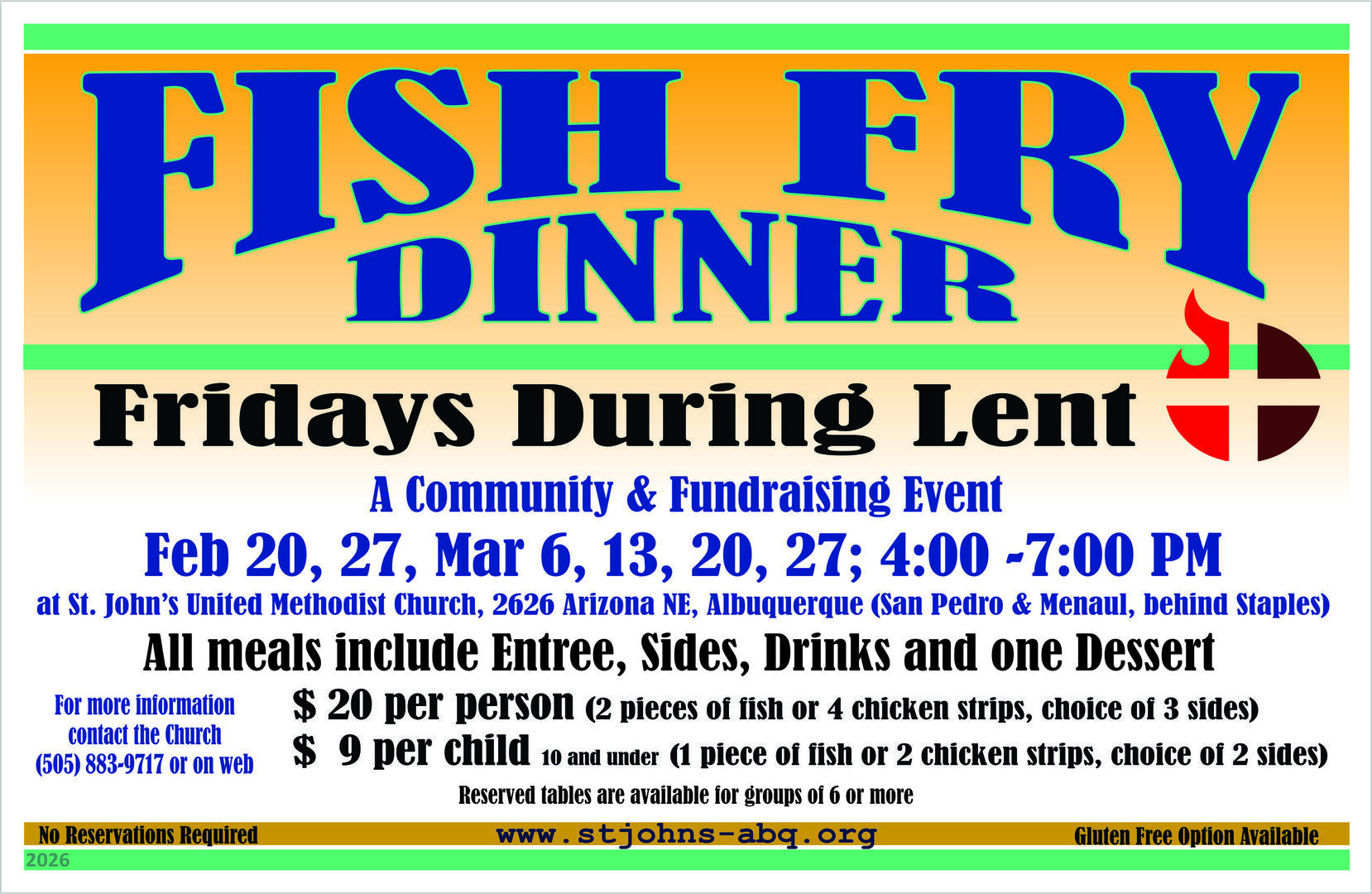 Join us for St. John's UMC's annual Lenten Fish Fry Dinners!