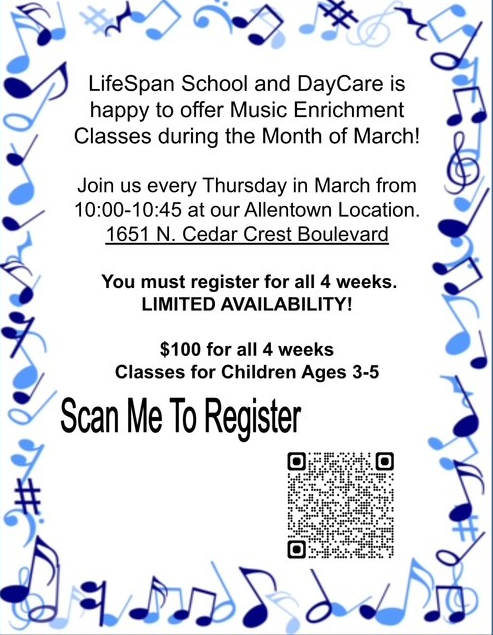 Where: LifeSpan School and Day Care 1651 North Cedar Crest Blvd. Allentown PA 18104