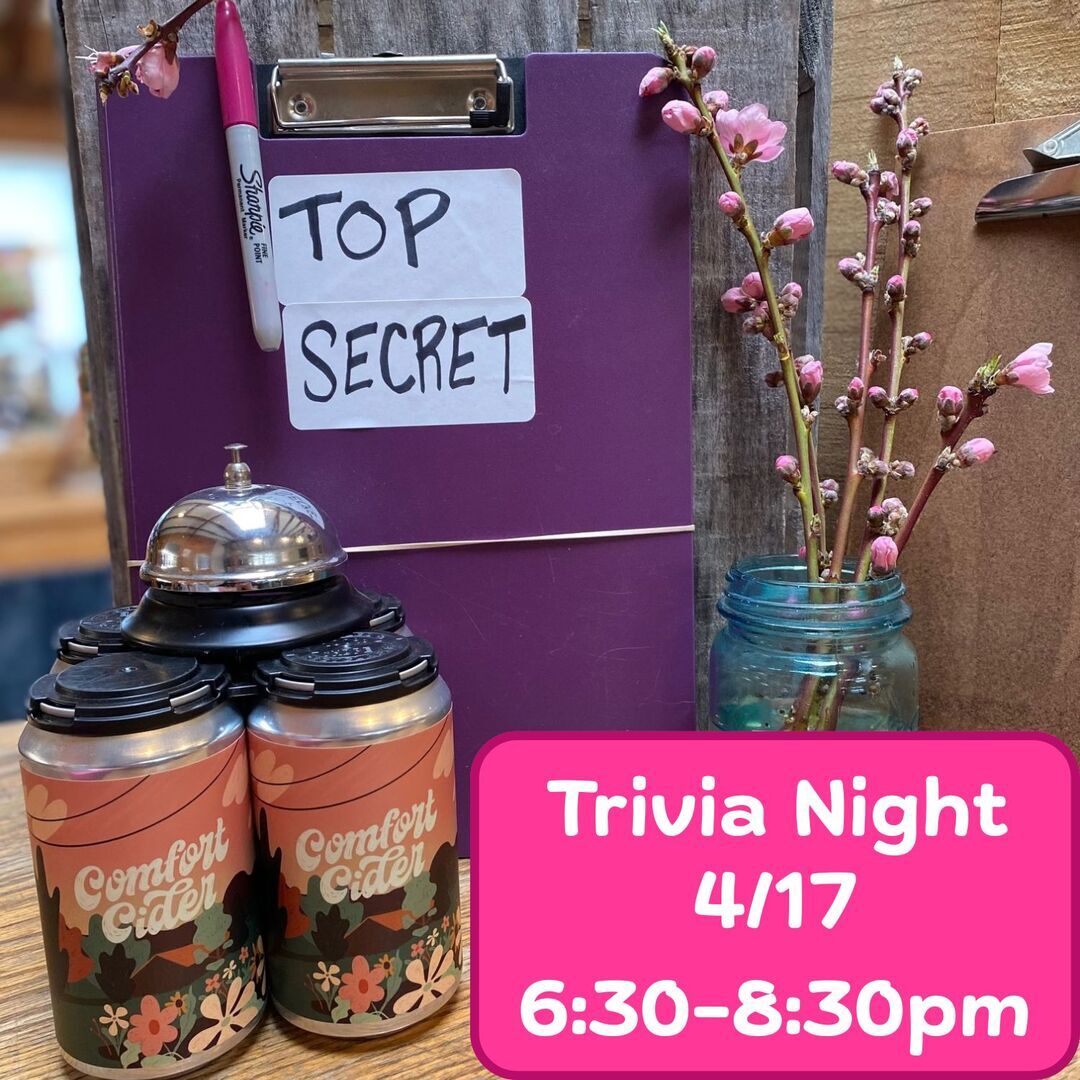 The trivia night that keeps everyone on their toes! Five rounds, prizes after each and one grand prize. 21+ Event. $10 Entry includes a can of cider (non-alcoholic options available). Starts at 6:30PM.
