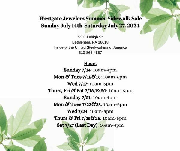 Westgate Jewelers has relocated from the Westgate Mall on Schoenersville Road to The United Steelworkers Building in Historic Bethlehem, PA. Our new location offers a massive area to host our highly anticipated sidewalk sale!