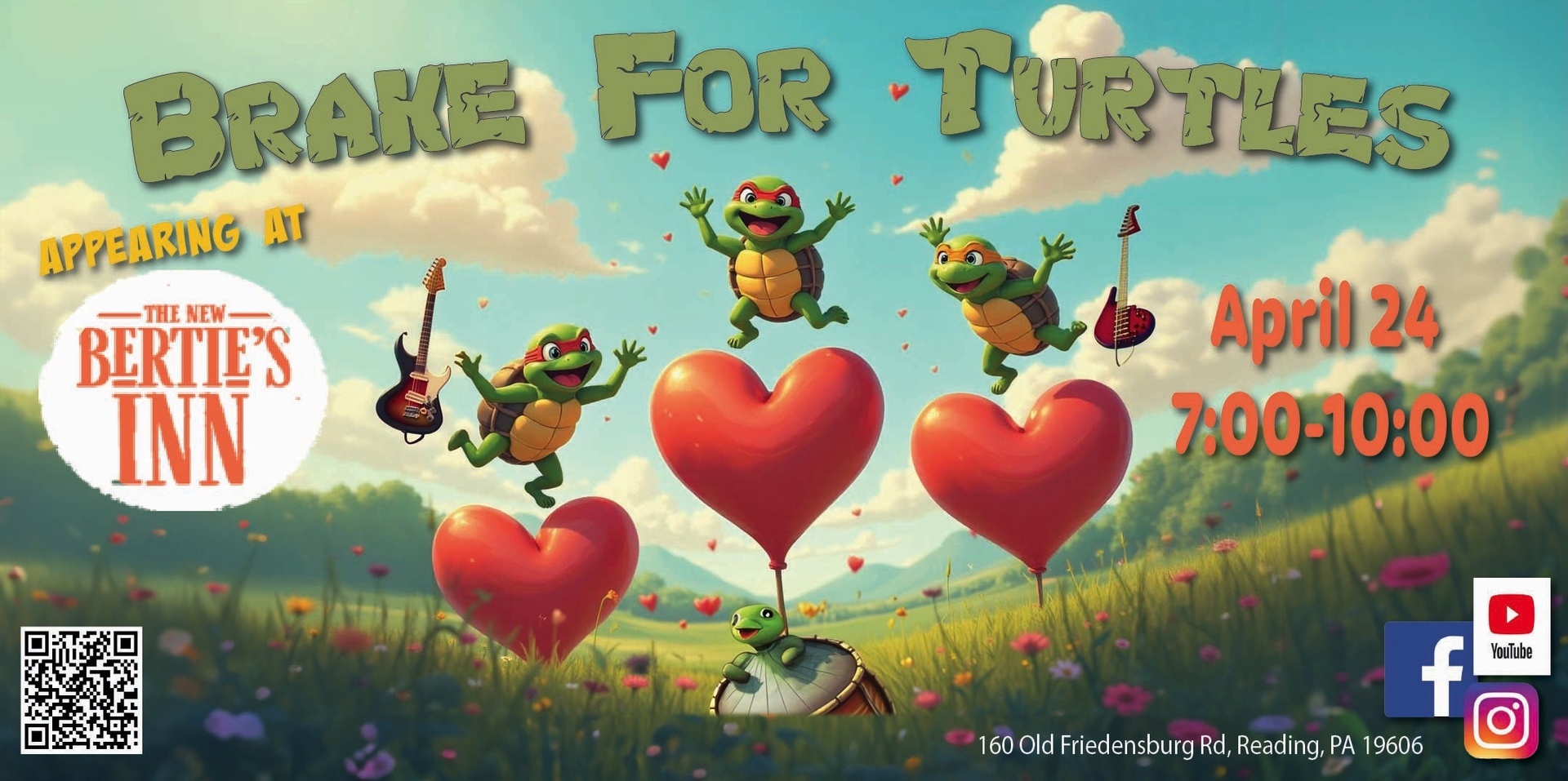 Based in the Lehigh Valley, PA, Brake For Turtles serves up an eclectic blend of: classic rock, soul, funk and a little bit of country. With a vast range of songs from well-known favorites to lost classics, they simply offer a little of something for everyone. So, tune in, jump around, and take a moment to let loose — and remember to Brake For Turtles.