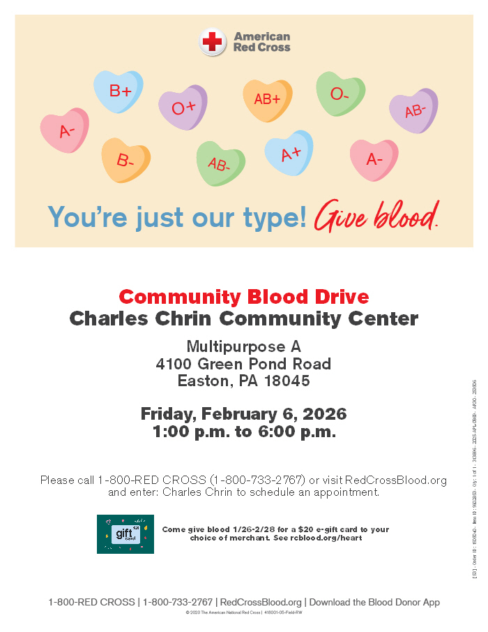 Open to public. Walk in donors welcome. Come give blood 1/26-2/28 for a $20 e-gift card to your choice of merchant. See rcblood.org/heart