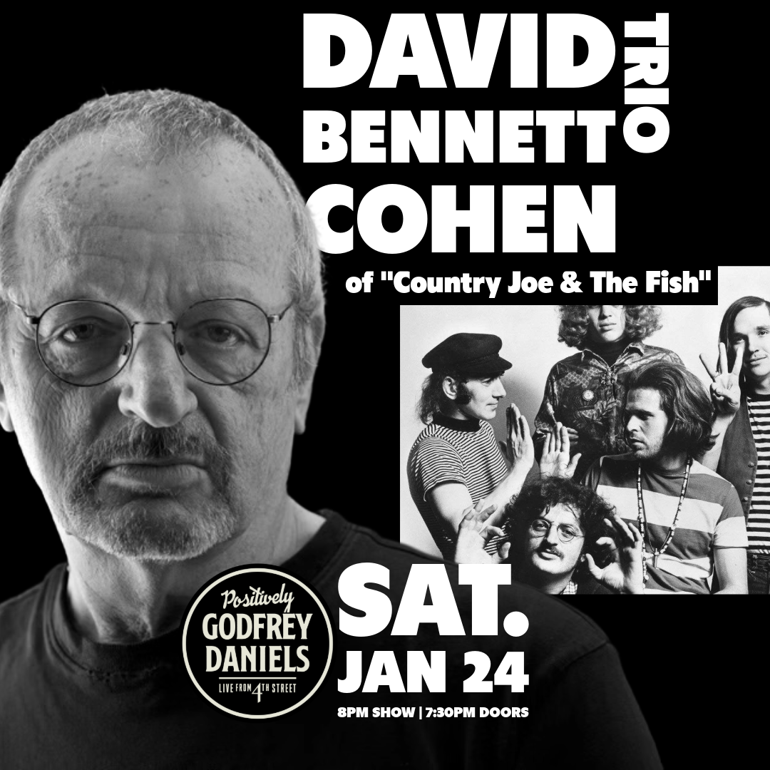 David Bennett Cohen and his trio are bringing more than six decades of music mastery to Godfrey Daniels. As a founding member of the iconic 1960s band Country Joe & The Fish, Cohen helped shape the sound of an era with his distinctive keyboard style and deep roots in blues and rock. A lifelong musician who’s shared stages with legends like Bonnie Raitt, Jerry Garcia, and Booker T., Cohen continues to captivate audiences with his dynamic performances and expressive musicianship. Join us for an unforgettable evening in our Live Music Listening Room, where the stories and sounds of rock history come alive in an intimate atmosphere.