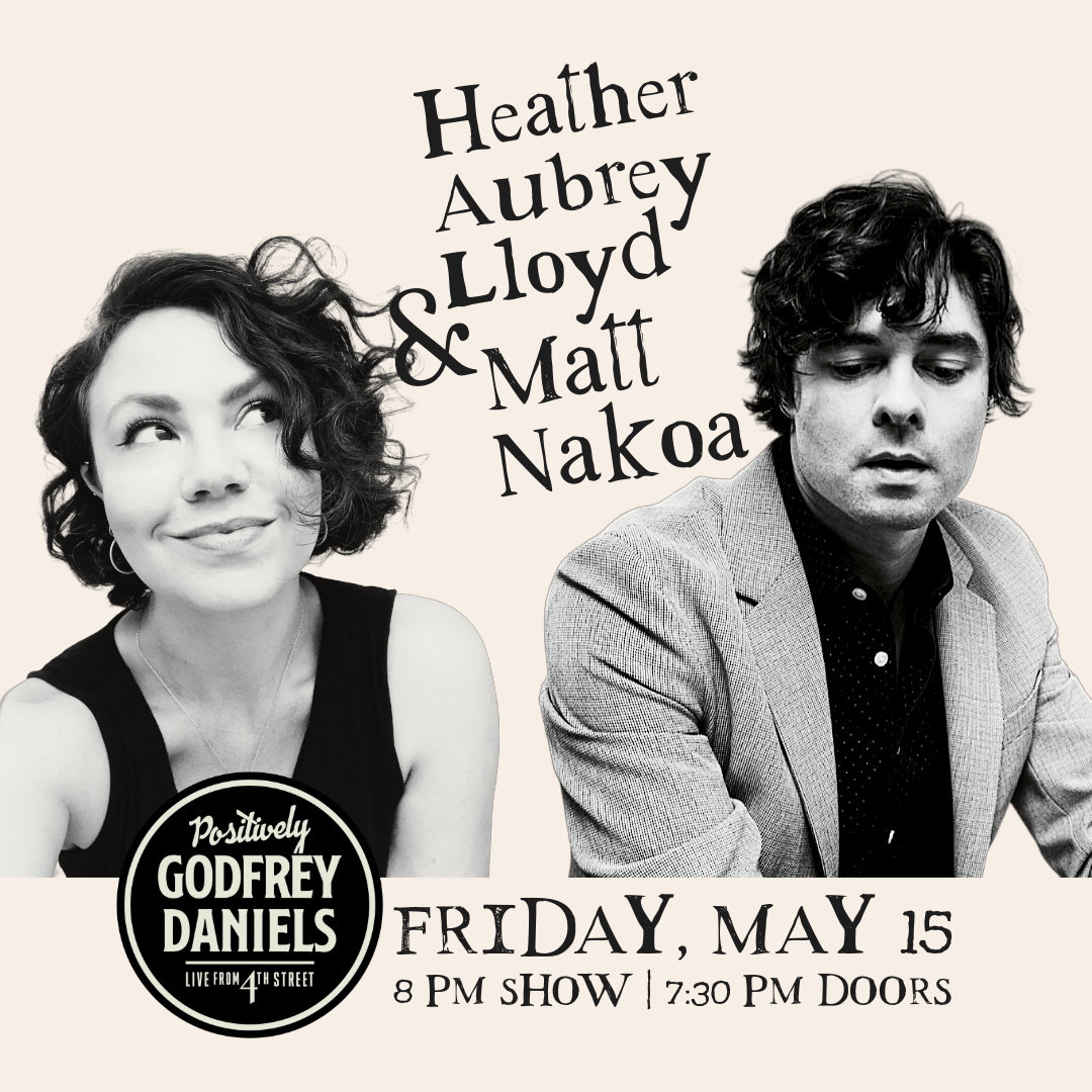 After first sharing a bill nearly two decades ago, Heather Aubrey Lloyd and Matt Nakoa have spent years crisscrossing the country as touring songwriters, occasionally reuniting to trade songs and stories from the road. Nakoa brings his background as a trained pianist and award-winning songwriter, known for moving easily between piano-driven pop, folk, and roots influences. Lloyd arrives with her new album Panic Room With A View, shaped by years of adventurous touring and a voice paired with finger-picked guitar and hand percussion. Their return to Godfrey Daniels offers a rare chance to hear two seasoned performers meet in the middle, sharing hard-earned songs in the close-up setting of a Live Music Listening Room.