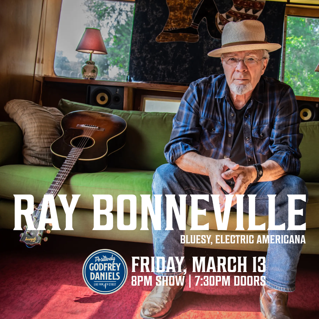 Ray Bonneville is a Juno Award–winning blues poet whose music is shaped by deep Southern grooves and a lifetime on the road. His stripped-down electric Americana blends a distinctive guitar style, unwavering foot percussion, smoky vocals, and a harmonica tone that carries both grit and restraint. Whether letting silence hang between notes or locking into a slow-burning groove, Bonneville delivers songs that feel lived-in and deliberate. Experience his masterful storytelling up close in the Intimate Atmosphere of Godfrey Daniels, where every lyric and harmonic detail has room to land in this premier Live Music Listening Room.