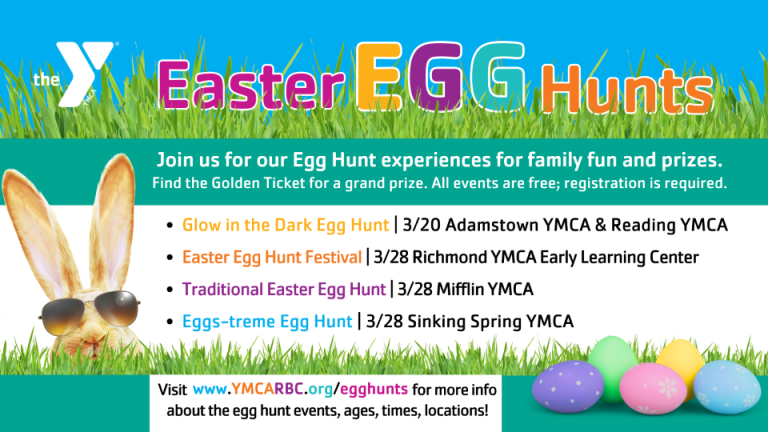 HomeEventsRichmond YMCA Early Learning Center Easter Egg Hunt Festival Richmond YMCA Early Learning Center Easter Egg Hunt Festival Saturday, March 28, 2026 10:00 AM - 1:00 PM 10:00 AM - 1:00 PM See all dates and Times YMCA Early Learning Center Parking Deals Get a Ride LYFT UBER Add to Calendar 03/28/2026 10:00 AM 03/28/2026 01:00 PM America/Atikokan Richmond YMCA Early Learning Center Easter Egg Hunt Festival Find the Golden Ticket for a grand prize! This is a free event; registration is required.Event LinksWebsite: https://go.evvnt.com/3482860-0 Details & Tickets: https://www.upcomingevents.com/allentown/events/ymca-early-learning-center/richmond-ymca-early-learning-center-easter-egg-hunt-festival-602525?ref=uceaddevent YMCA Early Learning Center, 14432 Kutztown Road, Fleetwood, PA, 19522 Set Reminder Categories Good For Families, Holiday, Kid-Friendly, Kids & Family View Event Website » Find the Golden Ticket for a grand prize! This is a free event; registration is required.Event LinksWebsite: https://go.evvnt.com/3482860-0