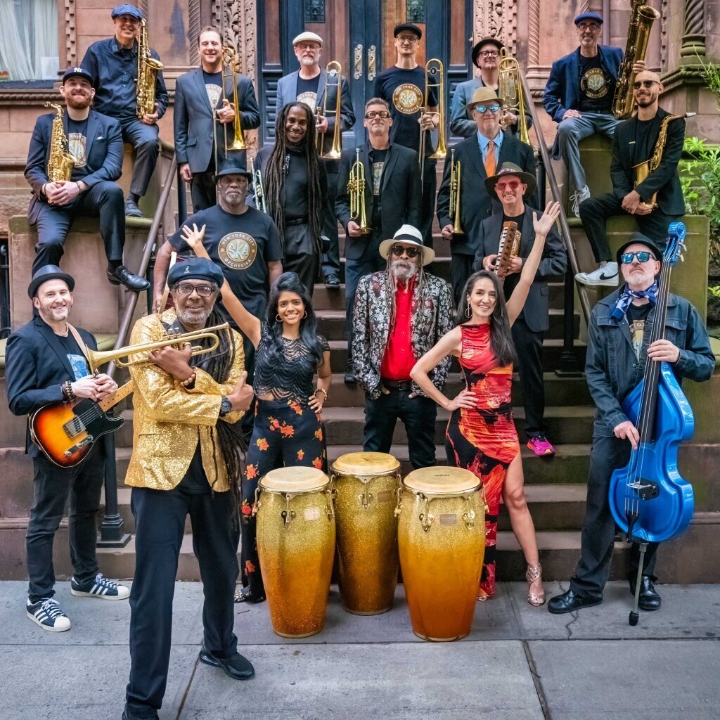 The NYC Ska Orchestra is a unique 18-piece big band that blends the exuberant musical layers of the jazz Big Band era with Jamaican roots music. Led by trumpeter and vocalist Kevin Batchelor, and featuring Jamaican music legend Larry MacDonald on congas and vocals, they create and perform lush original compositions and arrangements of classic songs from the rich and culturally iconic Jamaican music of ska, mento, rock steady, reggae, and jazz from the 1950s and 1960s. Together, Batchelor and MacDonald have recorded and/or performed with nearly every great Jamaican music artist, including Peter Tosh, Bob Marley, Bunny Wailer, Lee Scratch Perry, Skatalites, and Toots & The Maytals; and regularly work with the leading Jamaican artists of today.