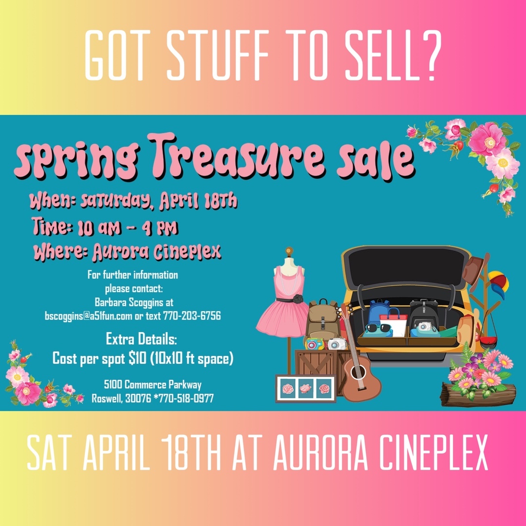 We are hosting our first SPRING TREASURE SALE here out in front of the Aurora Cineplex!