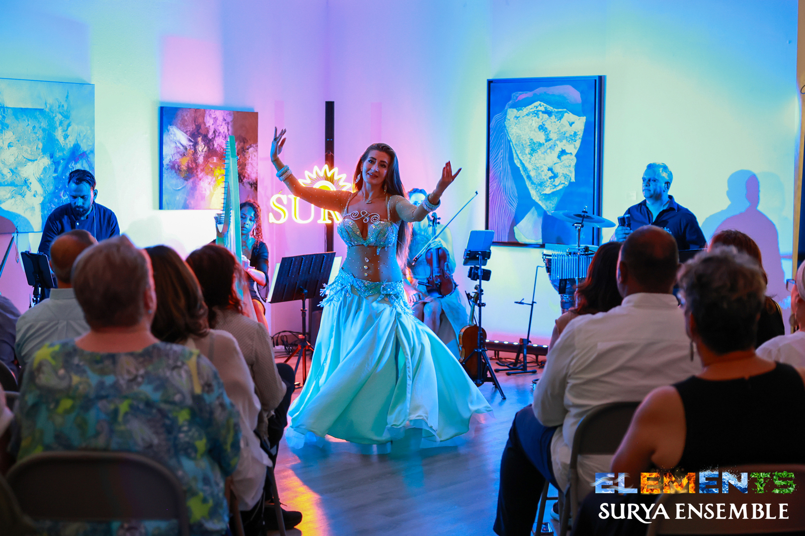 Experience “Elements” by Surya Ensemble – A Night of Global Fusion Music & Art Join Surya Ensemble for a one-of-a-kind concert experience in Atlanta! Our latest show, “Elements,” brings together world-class musicians and dancers for an intimate evening of global fusion music, storytelling, and vibrant artistry. About the Show: “Elements” is more than a concert—it’s a journey through the natural forces that shape our world: wind, water, earth, and fire. Each act weaves these themes into musical storytelling, blending the ancient and the modern. Expect a seamless fusion of Eastern and Western traditions, featuring mesmerizing live performances on the Shehnai, viola, violin, harp, daff (Persian drum), and more. Dazzling dance interludes add visual poetry to the night, all set in a beautiful art gallery atmosphere. What Makes This Night Special: Intimate, Luxury Setting: Limited seating inside Abernathy Arts Center’s gallery—surrounded by art and music, every guest is up close to the performers. World-Class Talent: Surya Ensemble’s lineup includes award-winning musicians and dancers from diverse backgrounds, each bringing their unique artistry to the stage.