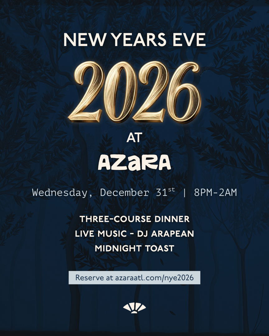 Celebrate New Year's Eve at Azara with a three-course, globally inspired dinner crafted by our culinary team, an all-night DJ set by DJ Arapean, and a midnight champagne toast as we welcome 2026 together.