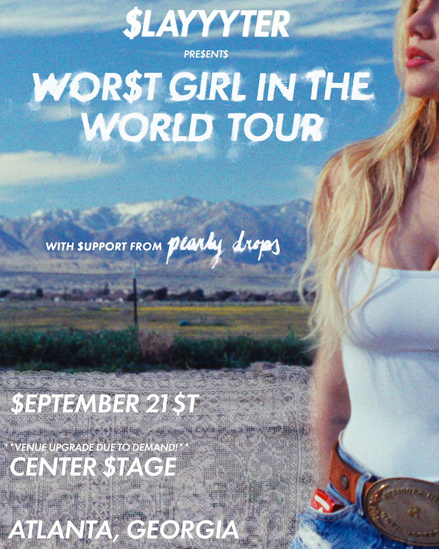 From her breakthrough 2019 self-titled mixtape to her 2021 debut Troubled Paradise and 2023’s STARFUCKER, SLAYYYTER proved herself to be one of the great shape-shifters of our time, taking the past, present, and future of pop and twisting it to her will. Early successes — “Daddy AF” went from viral hit making SLAYYYTER’s name online to soundtracking a key scene in the Oscar Best Picture winner Anora — fueled accolades from publications including Billboard, Paper, Variety, Rolling Stone, Pitchfork, and more, while earning SLAYYYTER opening slots with forebears like Tove Lo and Kesha. But even with all that, SLAYYYTER decided something wasn’t quite right. She decided to become who she was all along, underneath it all: the WOR$T GIRL IN AMERICA.