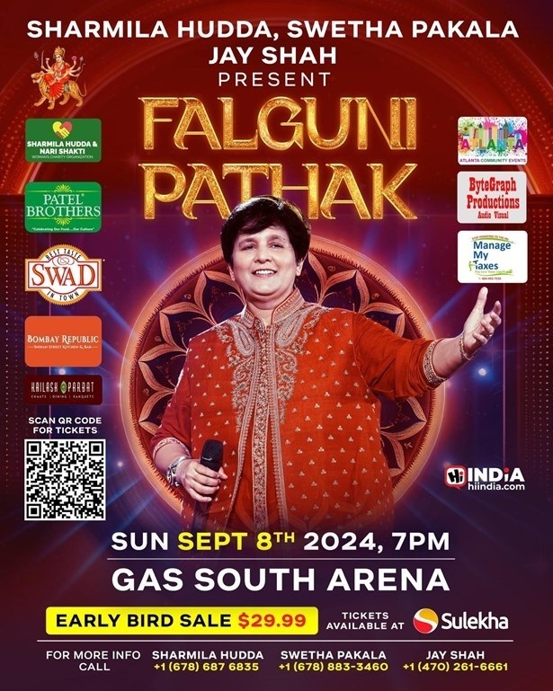 HomeEventsFalguni Pathak Live Garba & Dandiya - Atlanta This Event has Passed Falguni Pathak Live Garba & Dandiya - Atlanta Sunday, September 08, 2024 7:00 PM - 11:30 PM 7:00 PM - 11:30 PM See all dates and Times Gas South Convention Center Parking Deals Get a Ride LYFT UBER Add to Calendar 09/08/2024 07:00 PM 09/08/2024 11:30 PM America/Atikokan Falguni Pathak Live Garba & Dandiya - Atlanta Falguni Pathak Live Garba & Dandiya - Atlanta Event LinksTickets: https://go.evvnt.com/2453100-0 Details & Tickets: https://www.upcomingevents.com/atlanta/events/gas-south-convention-center/falguni-pathak-live-garba-dandiya-atlanta-241363?ref=uceaddevent Gas South Convention Center, 6400 Sugarloaf Parkway, Duluth, GA, 30097 Set Reminder Categories Live Performance, Performing Arts Falguni Pathak Live Garba & Dandiya - Atlanta Event LinksTickets: https://go.evvnt.com/2453100-0