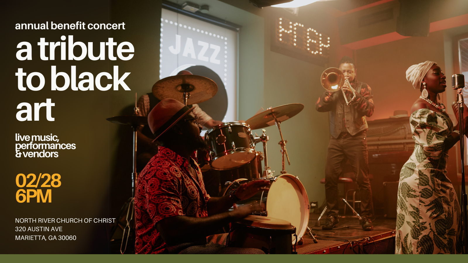 We're returning with our 4th annual benefit concert, "A Tribute to Black Art." Get your ticket(s) today! Come and enjoy performances by talented musicians, dancers, and poets as we celebrate Black History Month. Local black-owned businesses will also be present as vendors selling food, clothing, accessories, and other goods.