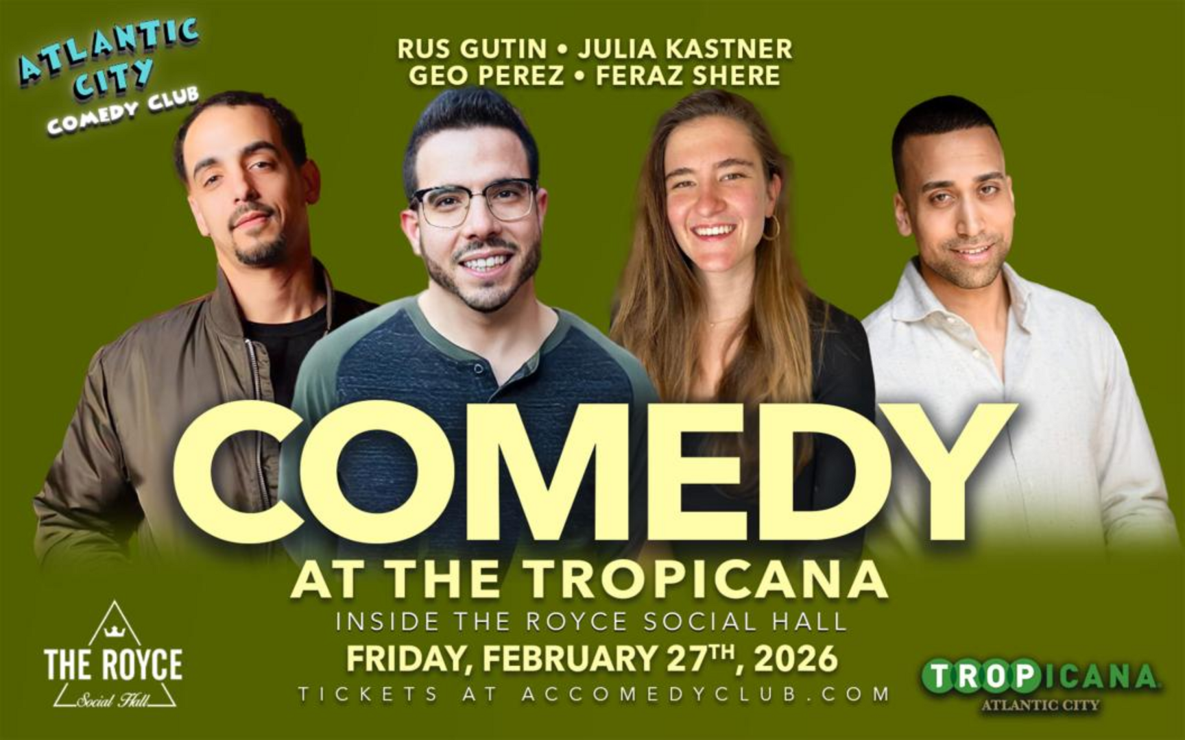 Atlantic City Comedy Club is now located in at the Tropicana inside the Royce Social Hall!