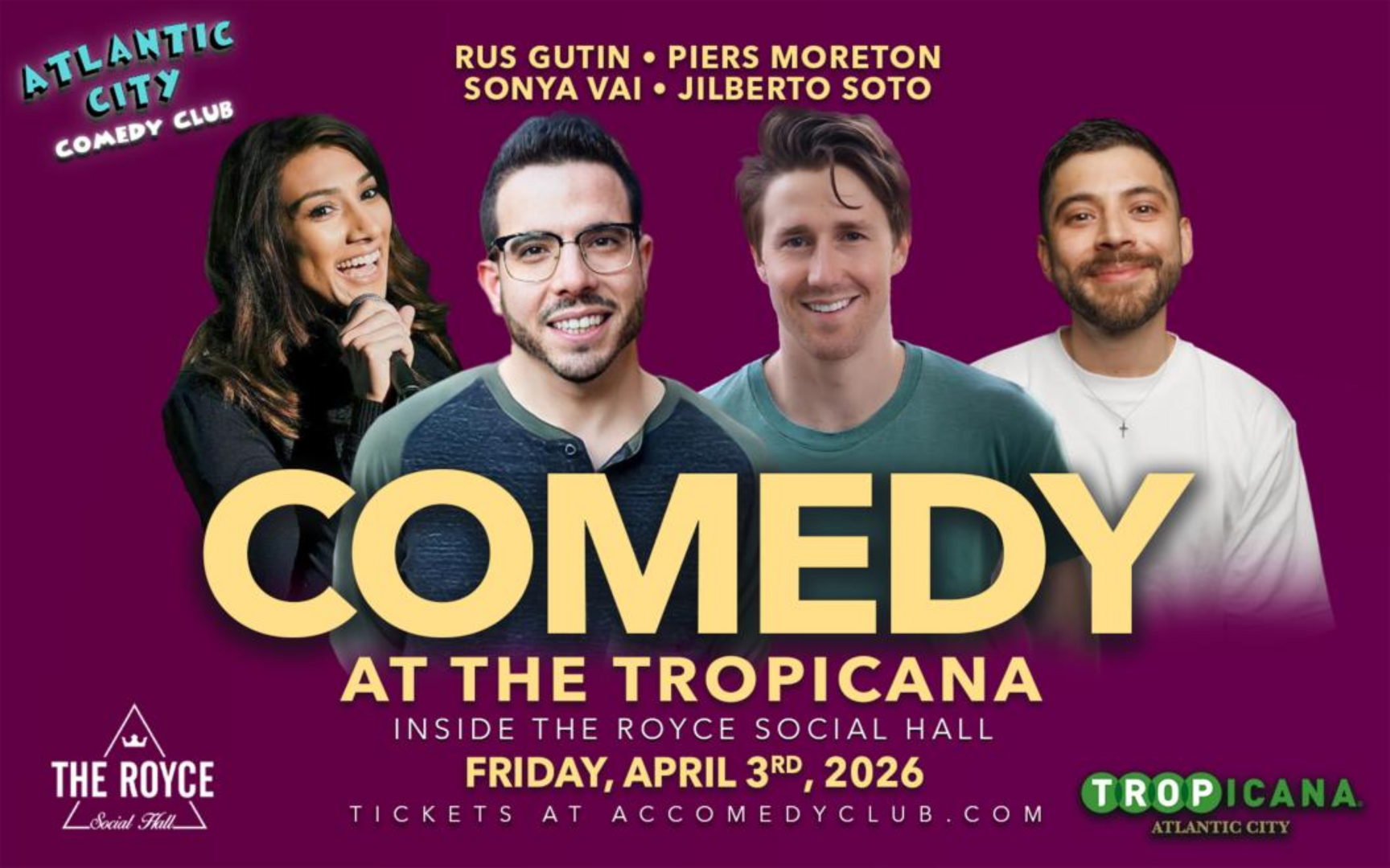 Atlantic City Comedy Club is now located in at the Tropicana inside the Royce Social Hall!