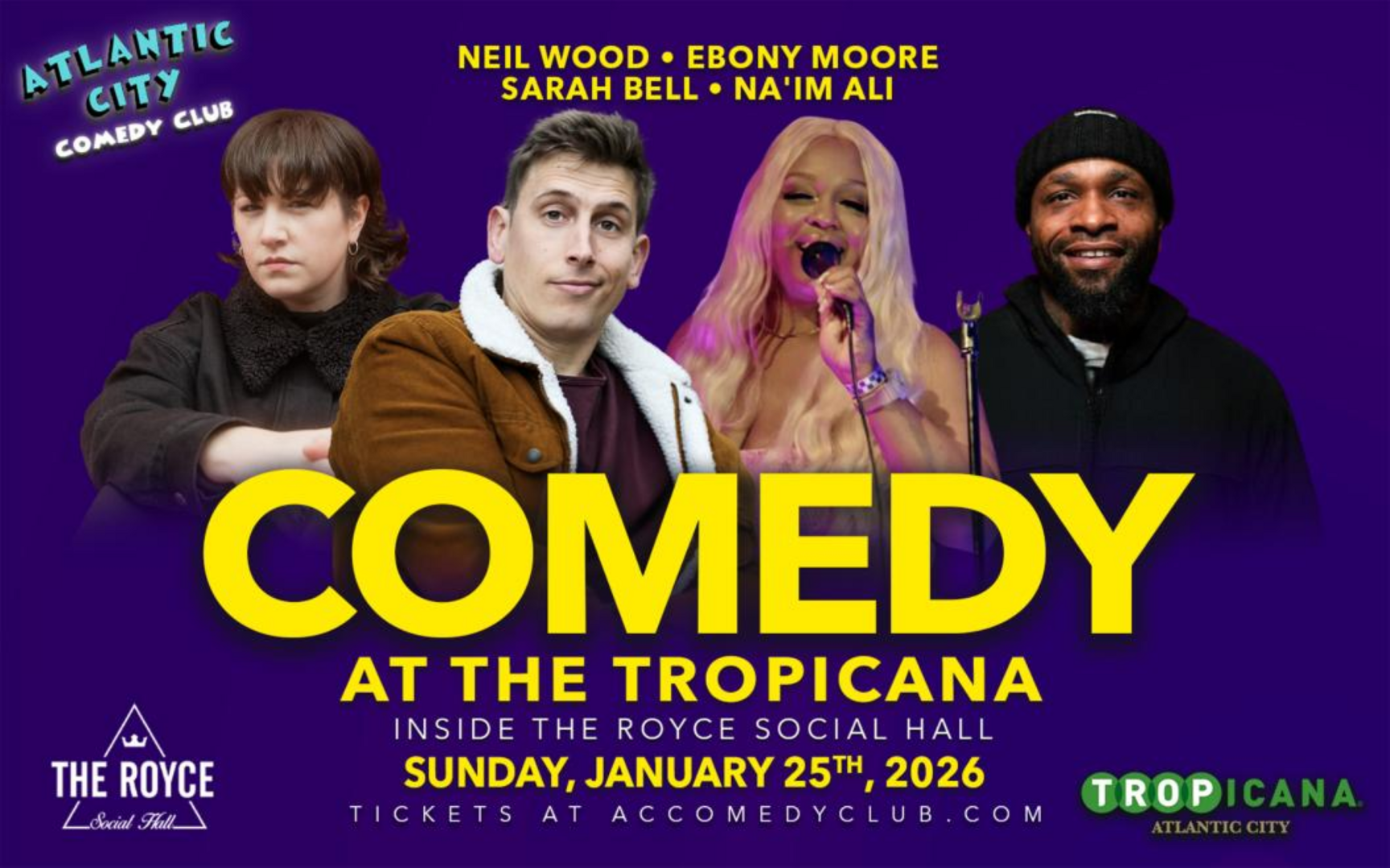 Atlantic City Comedy Club is now located at the Tropicana inside the Royce Social Hall!