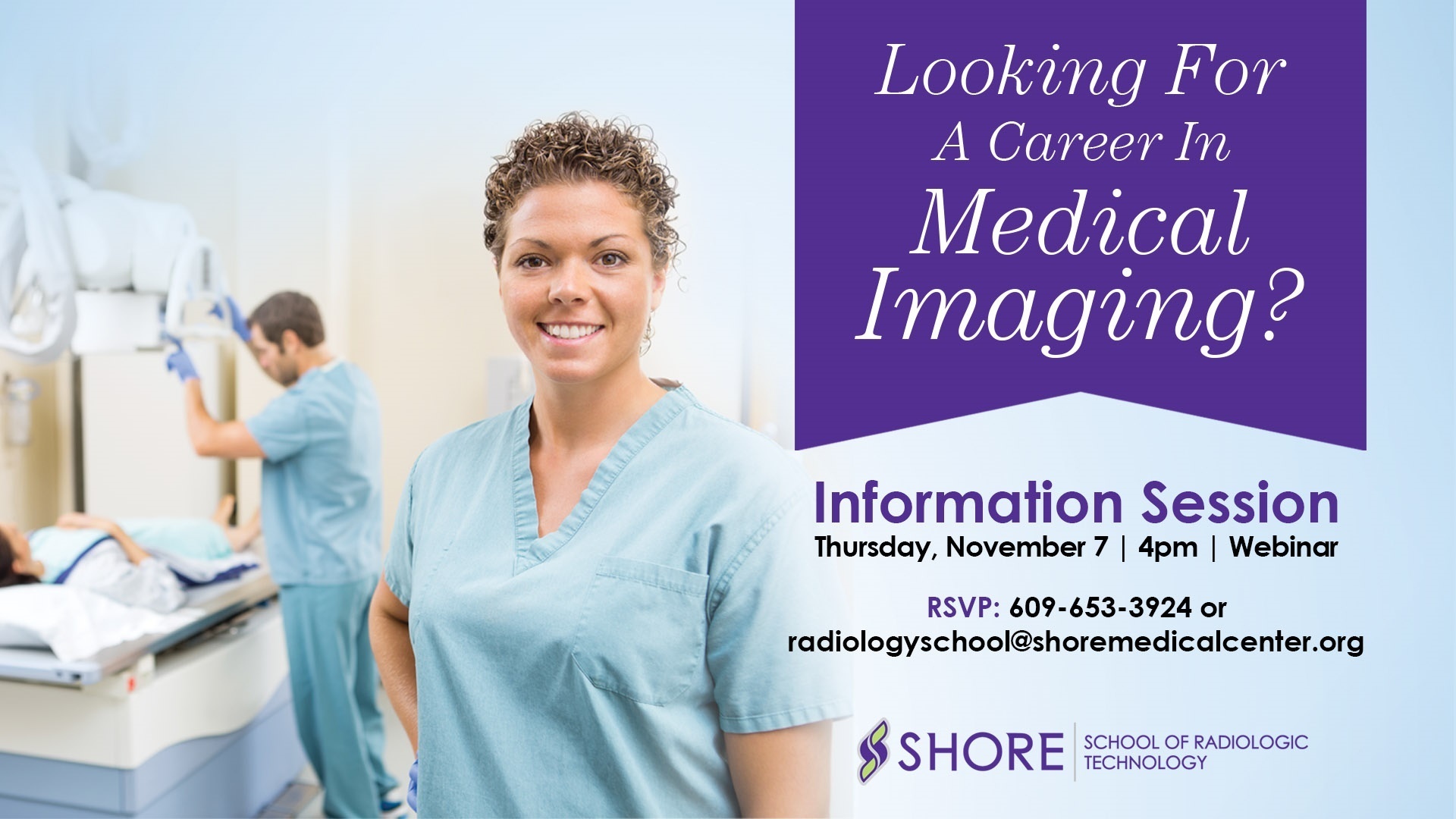 Are you interested in an exciting career in Radiology, MRI, Mammography, CT, Nuclear Medicine, Interventional Radiology or Radiation Therapy? Shore Medical Center's School of Radiologic Technology will be hosting a virtual webinar on Thursday, November 7, 4 p.m. To RSVP, call (609) 653-3924 or email [email protected].