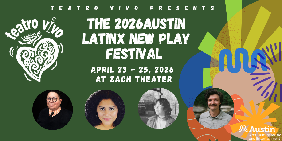 Teatro Vivo hosts our 16th annual Austin Latinx New Play Festival (ALNPF) at the ZACH Theatre campus on April 23 - 25, 2026. The 2026 ALNPF will present staged readings of four exciting, new plays by local, Austin-based playwrights!Thursday, April 23, 2026 @ 7:30PM on the Kleberg StageT-minus-15 by Diamante MartinezFriday, April 24, 2026 @ 7:30PM on the Kleberg StageAltares by Claudia ZapataSaturday, April 25, 2026 @ 2:30PM on the Whisenhunt StageEntrelazadas - Intertwined by Alison VasquezSaturday, April 25, 2026 @ 7:30PM on the Whisenhunt Stage111 Fires and 1 Flood at the Guatemalan Natural History Museum by Khristián Méndez AguirreTickets are available on a sliding scale. Please select the ticket price that works for you while supporting the important work of Teatro Vivo.You can read more about each play below. Follow us on Facebook and Instagram for all the updates on the 2026 ALNPF! This project is supported in part by an Elevate Grant of Austin Arts, Culture, Music and Entertainment.Teatro Vivo celebra la 16.a edición de nuestro Festival de Nuevas Obras Latinx de Austin (ALNPF) en el recinto del ZACH Theatre del 23 al 25 de abril de 2026. ¡El ALNPF 2026 presentará lecturas dramatizadas de cuatro nuevas y emocionantes obras de autores locales de la ciudad de Austin!Jueves, 23 de abril de 2026, a las 19:30 h, en el escenario KlebergT-minus-15, de Diamante MartínezViernes, 24 de abril de 2026, a las 19:30 h, en el escenario KlebergAltares, de Claudia ZapataSábado, 25 de abril de 2026, a las 14:30 h, en el escenario WhisenhuntEntrelazadas - Intertwined, de Alison VásquezSábado, 25 de abril de 2026, a las 19:30 h, en el escenario Whisenhunt111 Fires and 1 Flood at the Guatemalan Natural History Museum, de Khristián Méndez AguirreLas entradas están disponibles con precios variables. Elige el precio que más te convenga y apoya así la importante labor de Teatro Vivo.A continuación puedes leer más sobre cada obra. ¡Síguenos en Facebook e Instagram para estar al día de todas las novedades sobre el ALNPF 2026! Este proyecto cuenta con el apoyo parcial de una subvención Elevate de Austin Arts, Culture, Music and Entertainment.Read more about the 2026 ALNPF Selections:T-minus-15 (written by Diamante Martinez) follows Dani during his 14th year. Not only does he have to navigate the loss of his father, but also plan his quinceanera. This coming of age story explores the connection between culture, queerness and the importance of connecting with your ancestors.Altares (written by Claudia Zapata) is a multigenerational narrative about the queer identities that comprise families, whether visible or hidden. Through the creation of a Day of the Dead altar and historical flashbacks, a family comes to reconcile the pain of a misunderstood death and the necessary persistence of memory in acknowledging their own queer histories.Entrelazadas - Intertwined (written by Alison Vasquez) What happens when the stories you have been told are in contradiction to the “proof” as recorded by those in power? Six amigos decide if/how to stand up against injustice. This play asks us to examine what it means to navigate the milpa of life: love, lucha, and mikilis.111 Fires and 1 Flood at the Guatemalan Natural History Museum (written by Khristián Méndez Aguirre) follows a conservation biologist named Oscar on a loopy, voice-over-narrated trip to an old, dusty museum to find answers for forest conservation in post-war Guatemala. Más información sobre las obras del ALNPF 2026:T-minus-15 (escrita por Diamante Martinez) sigue a Dani durante su 14o año de vida, quien no sólo debe lidiar con la pérdida de su padre, sino también planear su quinceañera. Esta historia de transición a la adultez explora la conexión entre la cultura, la identidad queer y la importancia de conectar con los ancestros.Altares (escrita por Claudia Zapata) es una narrativa multigeneracional sobre las identidades queer que conforman las familias, ya sean visibles u ocultas. A través de la creación de un altar del Día de Muertos y de flashbacks históricos, una familia logra reconciliar el dolor de una muerte incomprendida con la persistencia de la memoria al reconocer las historias queer propias.Entrelazadas – Intertwined (escrita por Alison Vasquez) ¿Qué sucede cuando las historias que te han contado contradicen las «pruebas» de aquelllos en el poder? Seis amigos deben decidir si se alzarán contra la injusticia y, de hacerlo, cómo lo harán. Esta obra nos invita a examinar lo que significa transitar por la «milpa» de la vida: el amor, la lucha y el mikilis.111 Fires and 1 Flood at the Guatemalan Natural History Museum (escrita por Khristián Méndez Aguirre) sigue a un biólogo conservacionista llamado Oscar en un viaje singular —narrado en voz en off— hacia un museo antiguo y polvoriento, en busca de respuestas para la conservación forestal en la Guatemala de la posguerra.