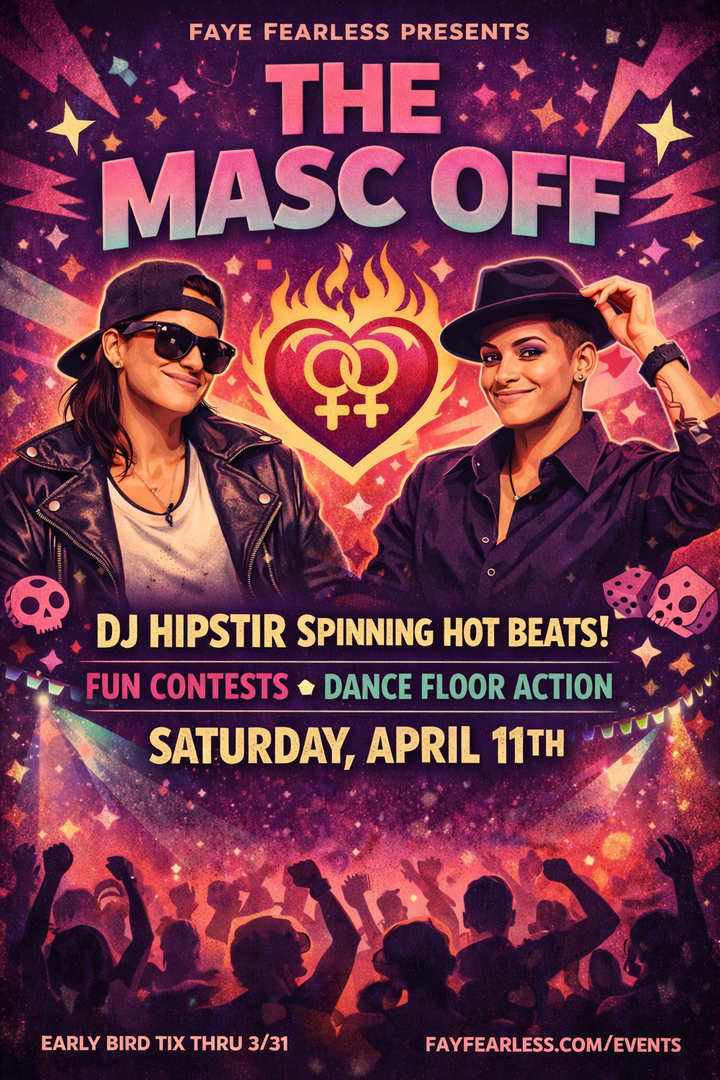 Calling all sapphics, lesbians, and WLW. The Masc Off is a high-energy night celebrating masc confidence, playful competition, and dance floor chemistry. Part show, part dance party, the night features interactive contests including the Swagger Showdown, Arm Wrestling Bracket, lip sync battles, and a flirty Rizz Off, with dance breaks throughout. A dedicated singles mingle section with mini games makes it easy to meet, flirt, and connect. Whether you’re competing or just coming to dance and take it all in, this is your space to show up, show out, and be part of the action.