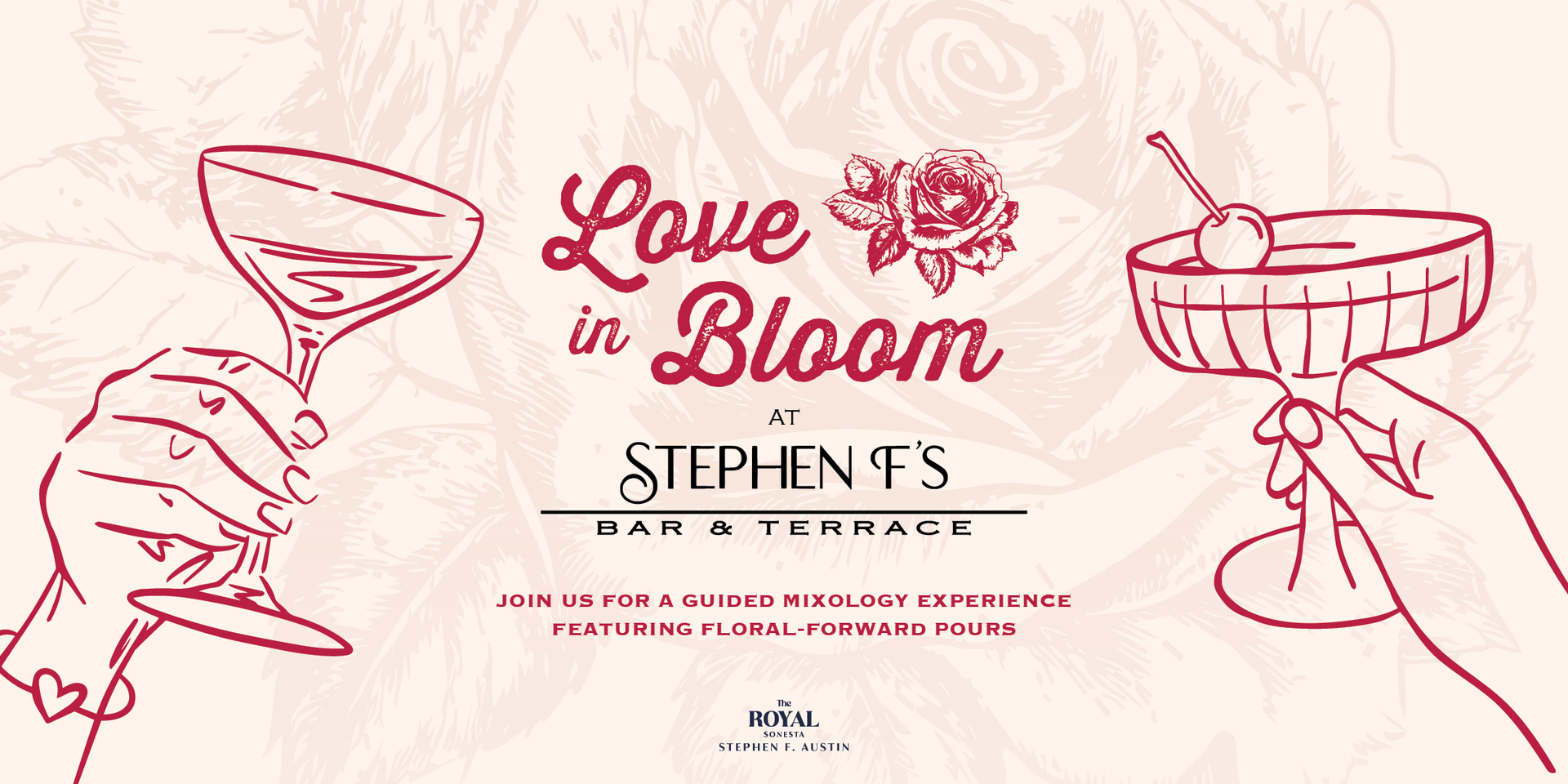 Sip, shake, and savor the season of romance at the Love in Bloom Mixology Experience at Stephen F's Bar & Terrace. Perfect for couples, gal pals, or anyone ready to toast to the month of love, this hands-on mixology experience guides guests in creating and enjoying three floral-forward cocktails from Stephen F's Love in Bloom menu