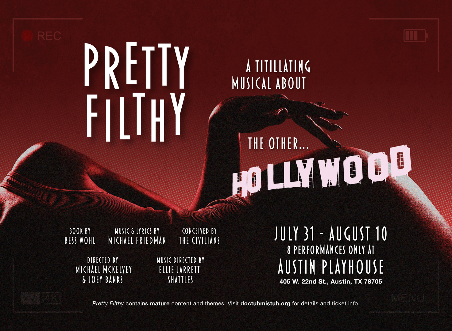 Inspired by a tradition of classic musicals about show business, Pretty Filthy is the untold showbiz musical, based on interviews with adult entertainers. Armed with their notepads and recorders, The Civilians crossed the mountain range that divides Hollywood from the "other Hollywood"—the San Fernando Valley, world capital of porn. The artists conducted interviews and visited sets to get an insider's glimpse into a world that is far more than the sum of its (very) visible parts. The Civilians' time in the Valley captured a singular time in our culture; this digital era that's radically transformed the business of sex. Pretty Filthy is ultimately a story about trying to make a life and a living in an ever-changing world—a task that's all the more complicated when your work is so intimately tied to customer "satisfaction."