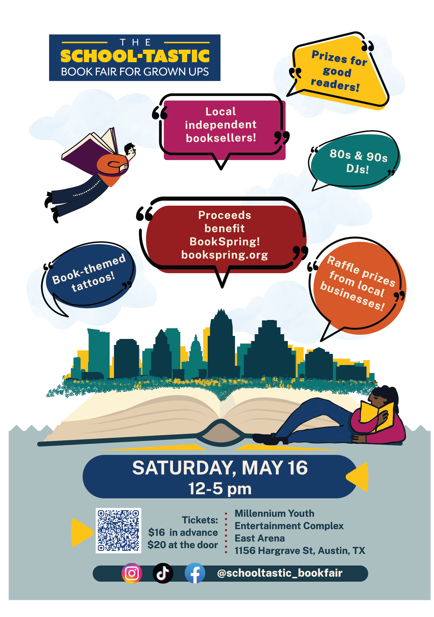 That’s right, the School-tastic Book Fair for Grownups is back for our second chapter! With over 30 local vendors, nostalgic activities, yearbook photos, raffle prizes, book-themed tattoos, and other fun surprises, you'll want to book this on your calendar. And the best part, proceeds benefits Austin nonprofit BookSpring.