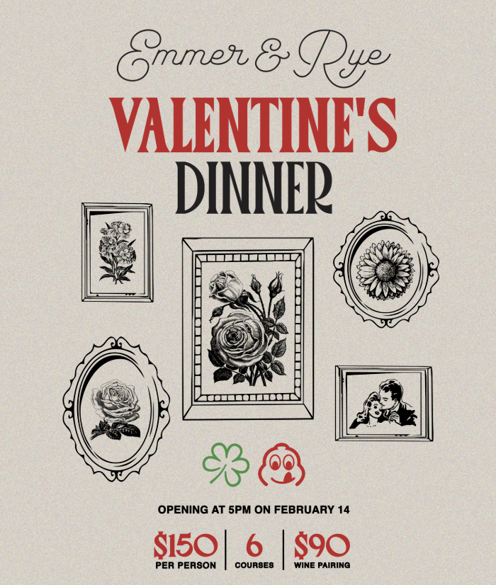 Celebrate Valentine’s Day at Emmer & Rye with a six-course dining experience featuring a shared menu that pays homage to Texas's seasonal bounty. The dinner is $150 per person, with an optional wine pairing available for $90 per person. Guests can also bring home a tabletop dried floral arrangement from San Antonio’s Pullman Market for $40. Reservations are available via OpenTable.