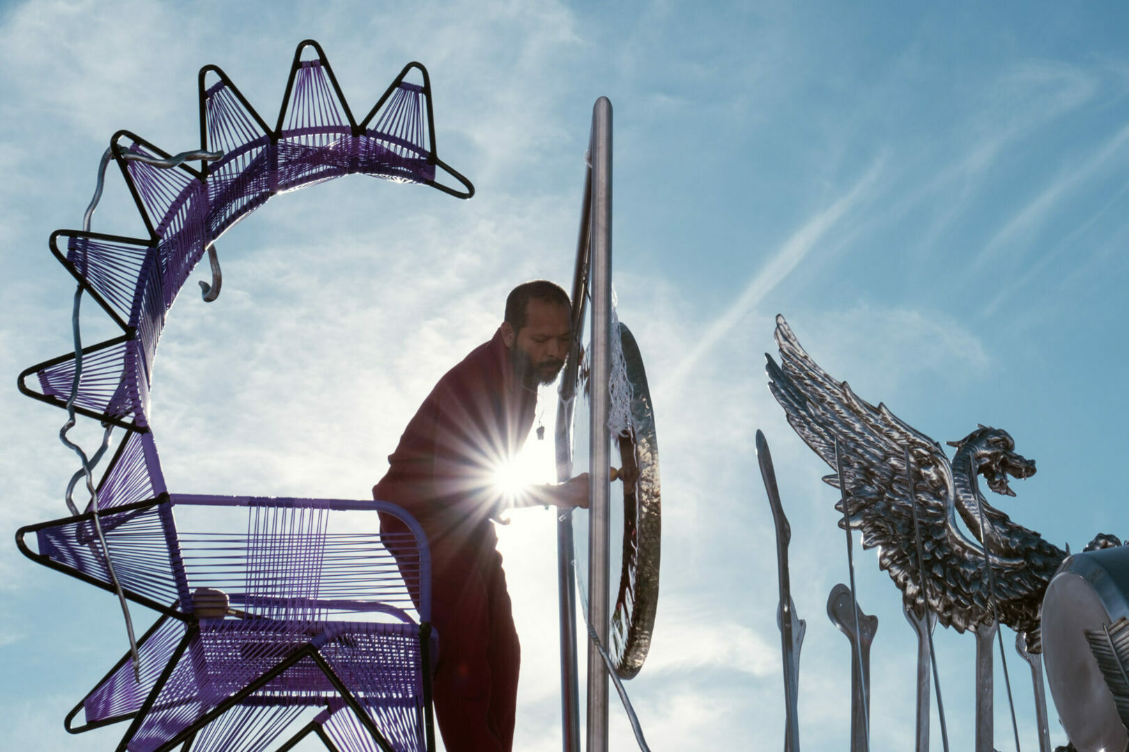 Mariposa Relámpago is the artist’s largest sound-healing sculpture. At the sound bath, the artist and sound healers will play the gongs to activate the work and create an immersive soundscape, restoring calm and balance to those in attendance.