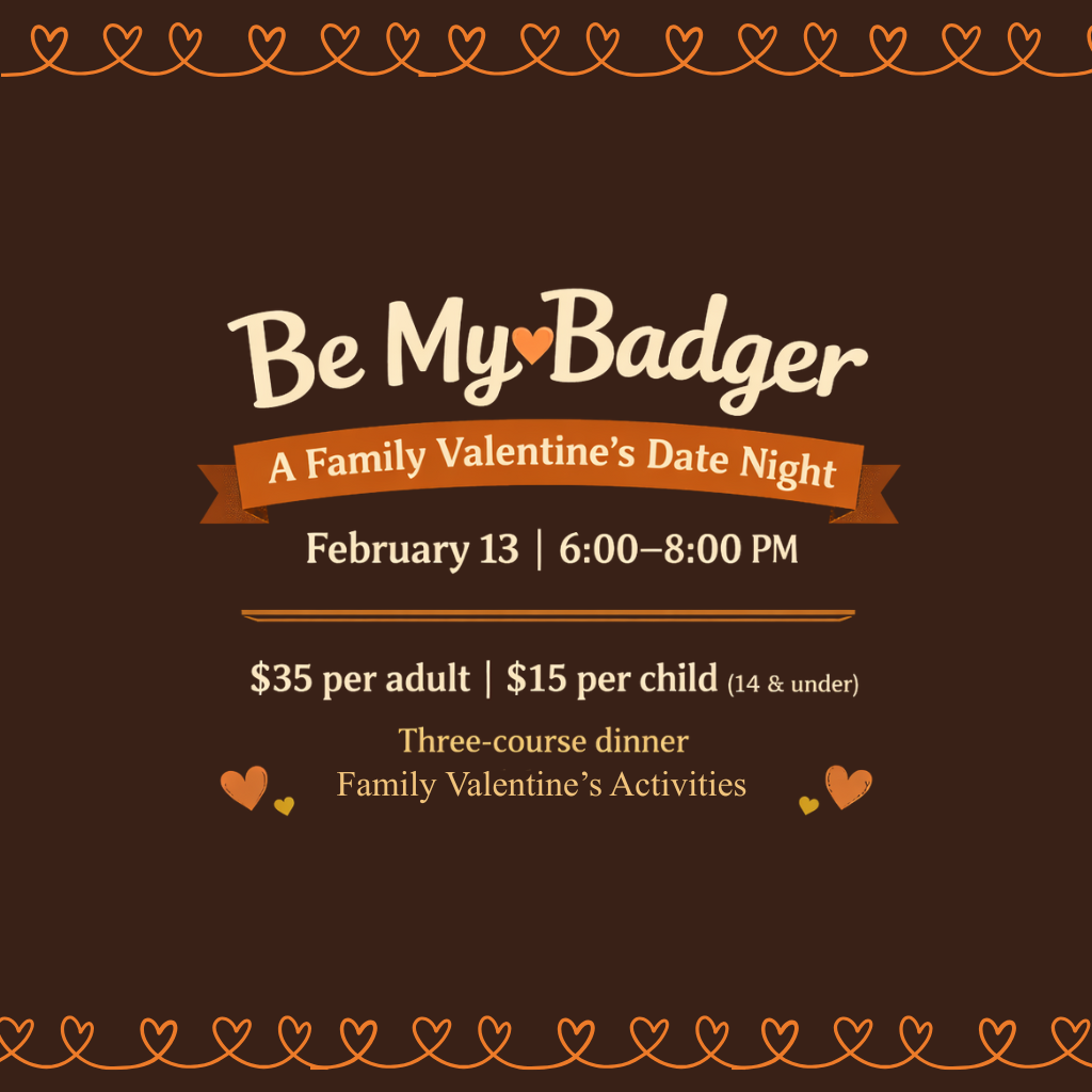 Be My Badger is a special family-focused Valentine’s dinner designed to create meaningful memories in a fun, nostalgic setting. Whether you’re a parent, guardian, grandparent, or chosen family, everyone is welcome and celebrated.