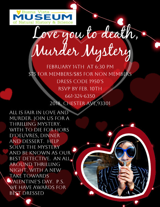 The Buena Vista Museum of Natural History and Science presents: “Love Ya to Death” A Valentine’s Murder Mystery Dinner