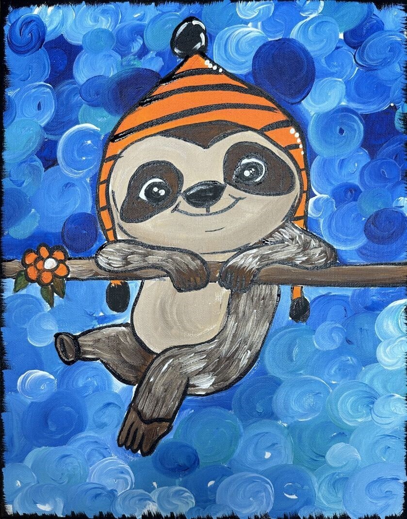 Take it slow and enjoy a lighthearted afternoon with this adorable โDonโt Hurry, Be Happyโ sloth painting. With its sweet smile, cozy hat, and relaxed vibe, this piece is all about slowing down, having fun, and embracing the moment.