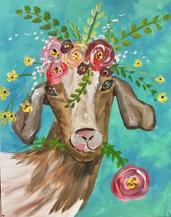 Spend a cheerful spring afternoon painting this adorable goat surrounded by colorful flowers. Goat in the Flower Garden is full of personality and playful charm, making it a fun choice for a relaxing afternoon of creativity with friends or family.