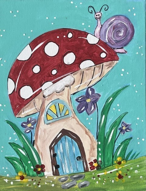 Step into a tiny world of magic and charm with this whimsical Mushroom Cottage painting. It is sweet, cozy, and beginner friendly, with your 11x14 canvas pre traced so you can sip, relax, and enjoy a playful afternoon of creativity. Perfect for families, kids, and anyone who loves a little fairytale fun.
