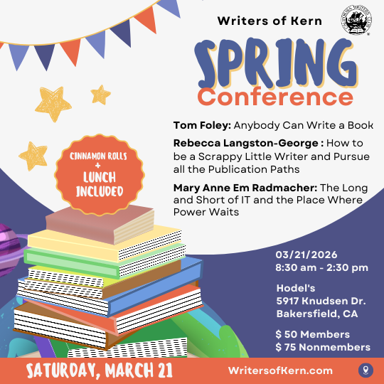 Writers of Kern invites writers of all experience levels to its Spring Conference on March 21, 2026, a half-day gathering designed to inspire, inform, and energize your writing practice.