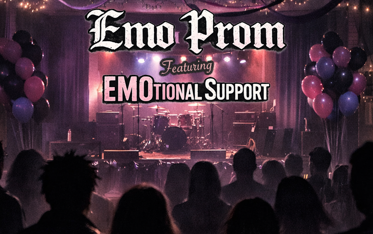 EMO Prom is a full-on throwback dance party celebrating the angst, anthems, and eyeliner-soaked bangers of the early-2000s emo era, performed live by EMOtional Support. Known for high-energy, crowd-driven shows that turn the entire room into a sing-along, EMOtional Support brings the emotion, nostalgia, and chaos that made these songs unforgettable. Dress to impress in your best prom or emo attire and relive the glory days with a soundtrack packed with scream-at-the-top-of-your-lungs hits from bands that defined a generation. Expect dramatic vibes, big feelings, and a packed dance floor reliving 2006 all over again. Whether you missed prom the first time around or just want a redo with better music and beer, EMO Prom is your chance to cry, dance, and feel everything.