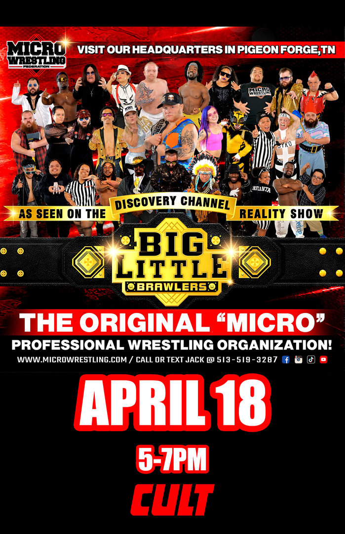 The Micro Wrestling Federation is a full-scale, WWE type event supported by an entire cast under five feet tall. It’s going to be pandemonium as the Micro Wrestlers body slam, bear hug, and headlock throughout an evening of nonstop action. Here is what you can expect: